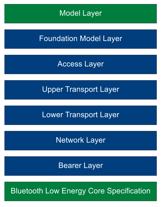 - Uses the BLE layer up to GAP as the “PHY” Layer for Mesh